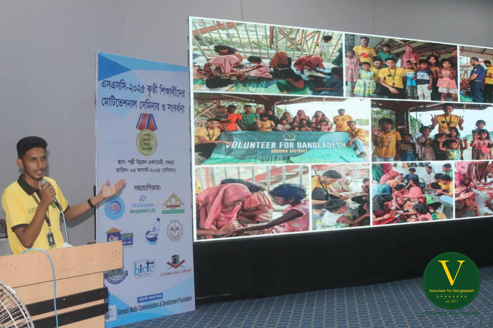 ভলান্টিয়ার ফর বাংলাদেশ বগুড়া জেলা শাখার আয়োজনে পল্লী উন্নয়ন একাডেমি, শেরপুরে অনুষ্ঠিত হয়েছে “কৃতী শিক্ষার্থী সংবর্ধনা ও মোটিভেশনাল সেমিনার ২০২৫”। এবারের প্রতিপাদ্য ছিল “মেধার জয়গান, স্বপ্নের অনুপ্রেরণা”।