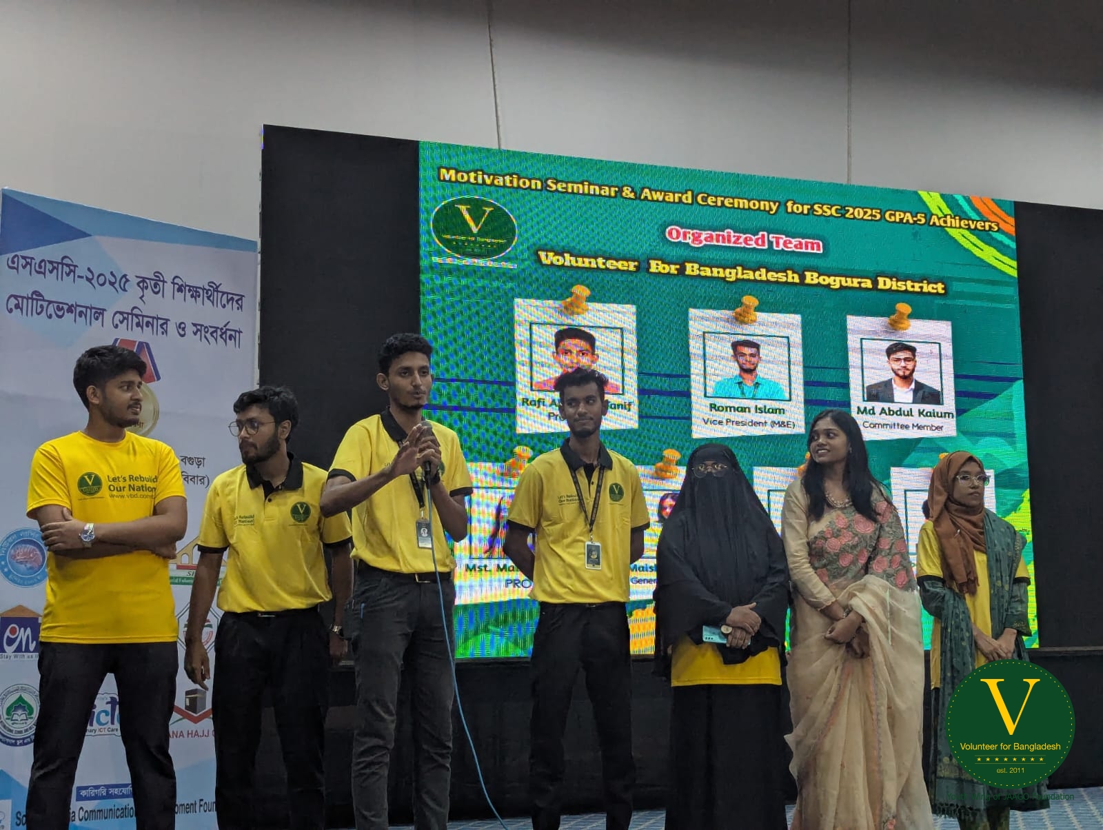 অনুষ্ঠানের সার্বিক ব্যবস্থাপনায় বগুড়া জেলার ৩০ জন স্বেচ্ছাসেবক সক্রিয়ভাবে অংশগ্রহণ করেন। বক্তারা শিক্ষার্থীদের বড় স্বপ্ন দেখতে, অধ্যবসায়ে দৃঢ় থাকতে এবং ইতিবাচক মানসিকতা নিয়ে এগিয়ে যেতে উদ্বুদ্ধ করেন।
