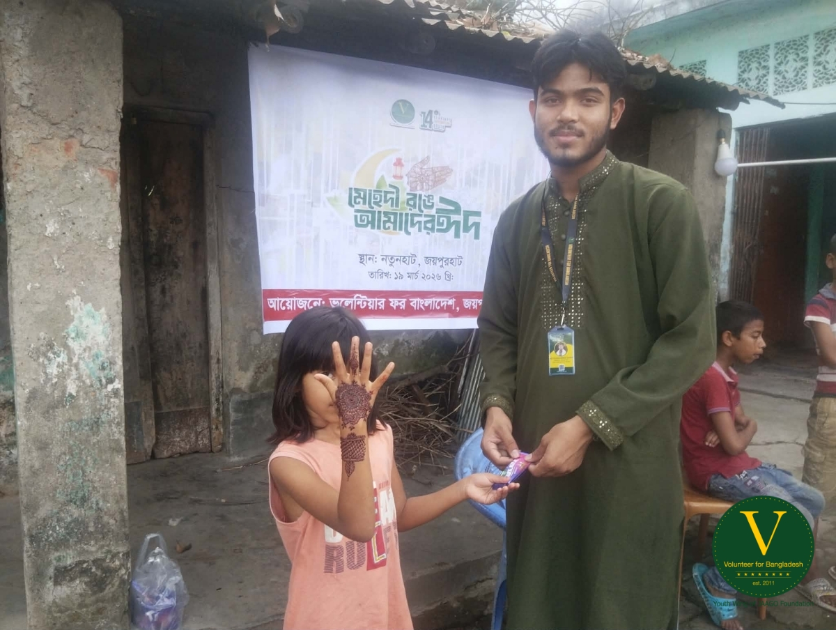 সুবিধাবঞ্চিত শিশুদের ঈদের আনন্দকে আরও রঙিন করে তুলতে “ভলান্টিয়ার ফর বাংলাদেশ - জয়পুরহাট জেলা” আয়োজন করেছিল নতুনহাটে এক প্রাণবন্ত বিকেলের। পুরো আয়োজনজুড়ে ছিল উৎসবের আবহ, যেখানে শিশুদের উচ্ছ্বাস আর হাসি যেন ছড়িয়ে পড়েছিল চারদিকে।