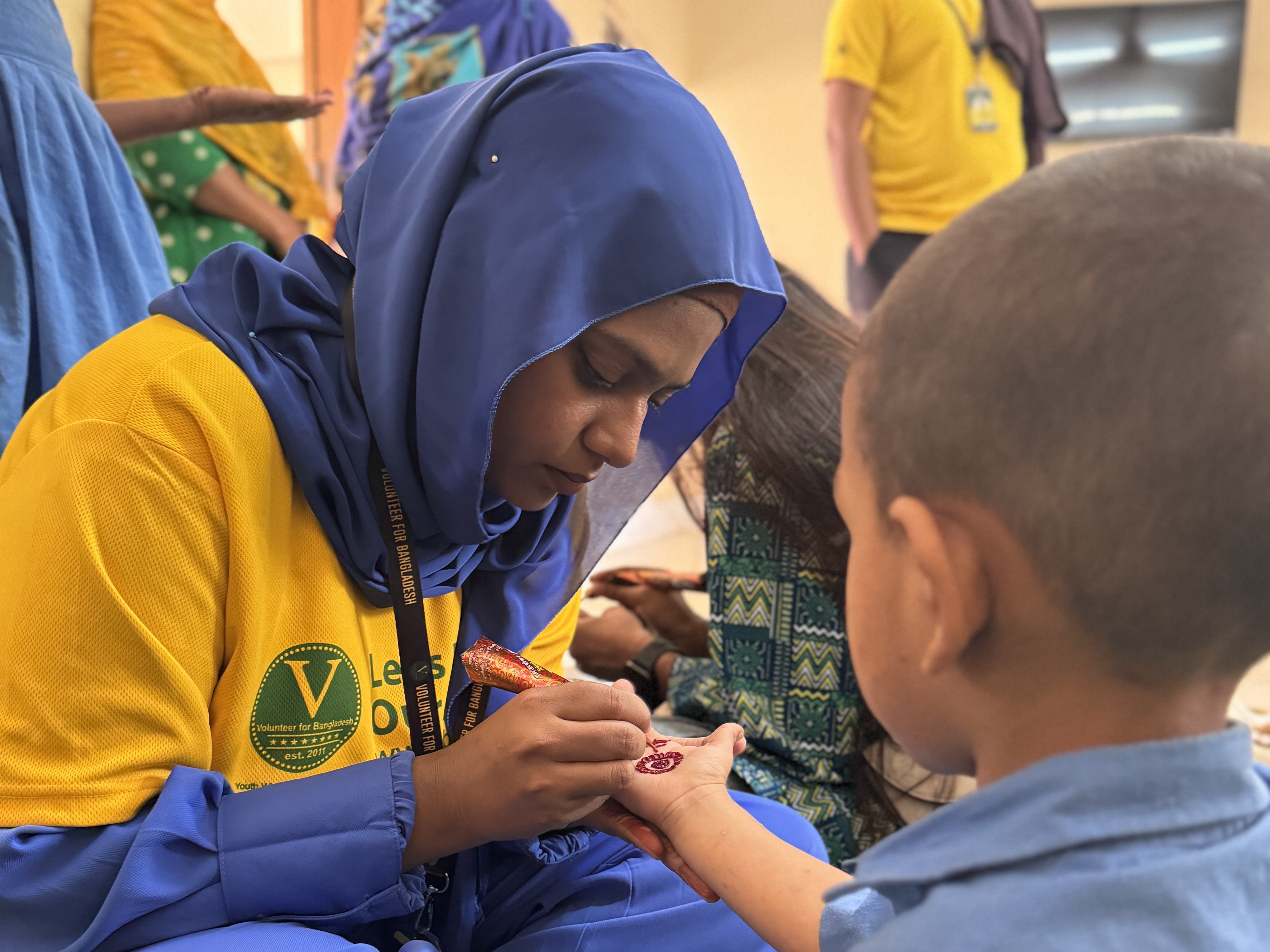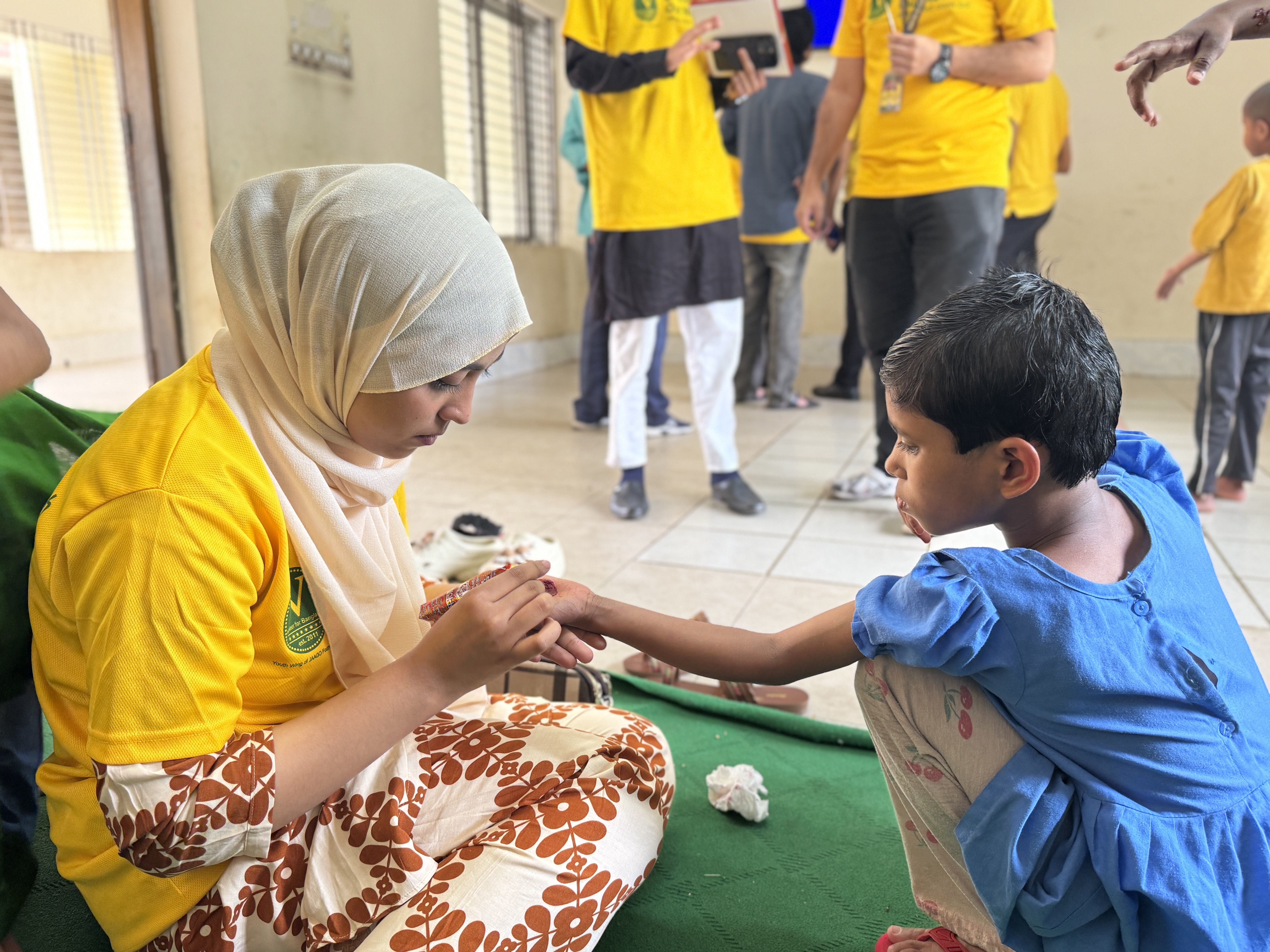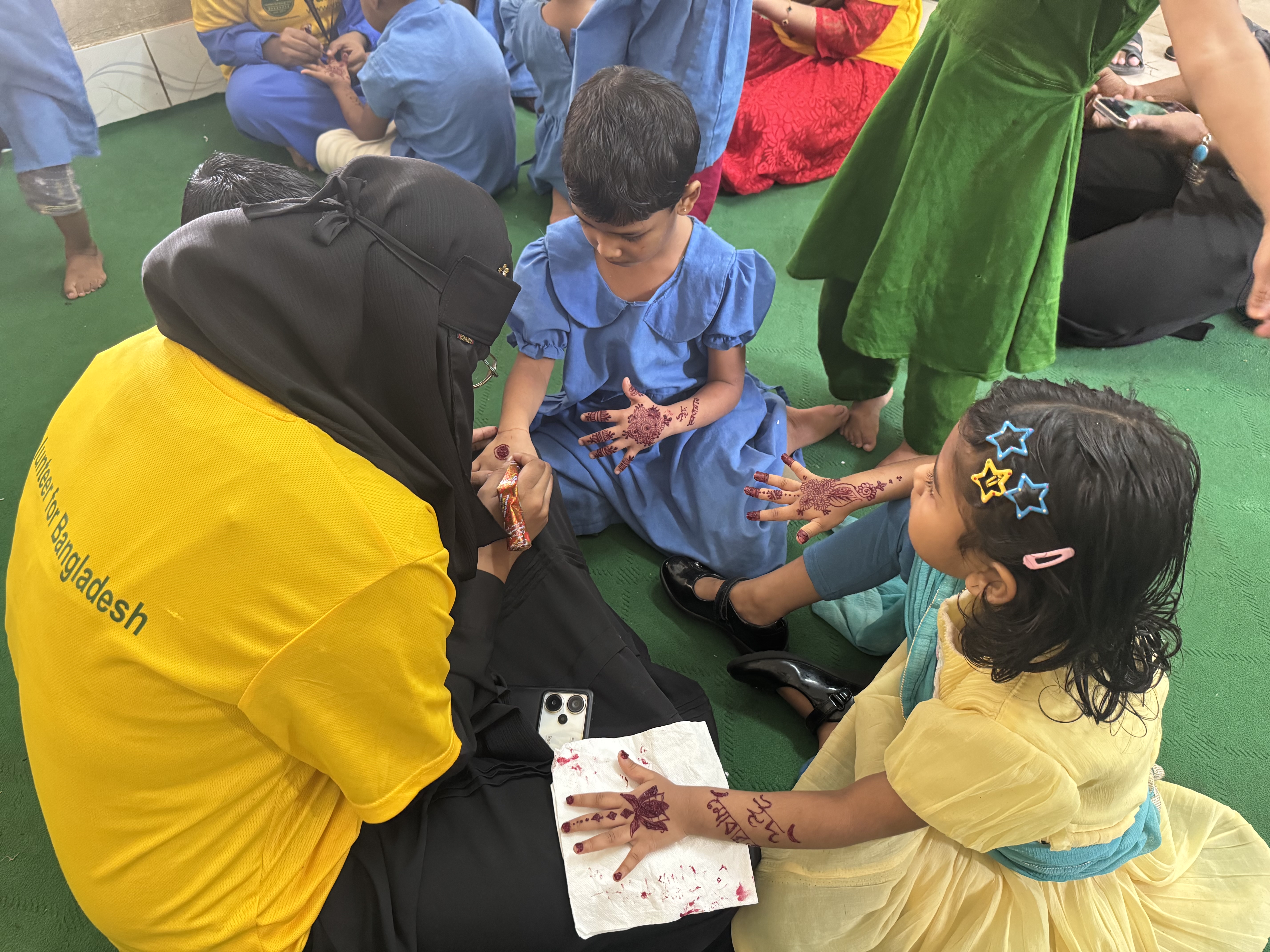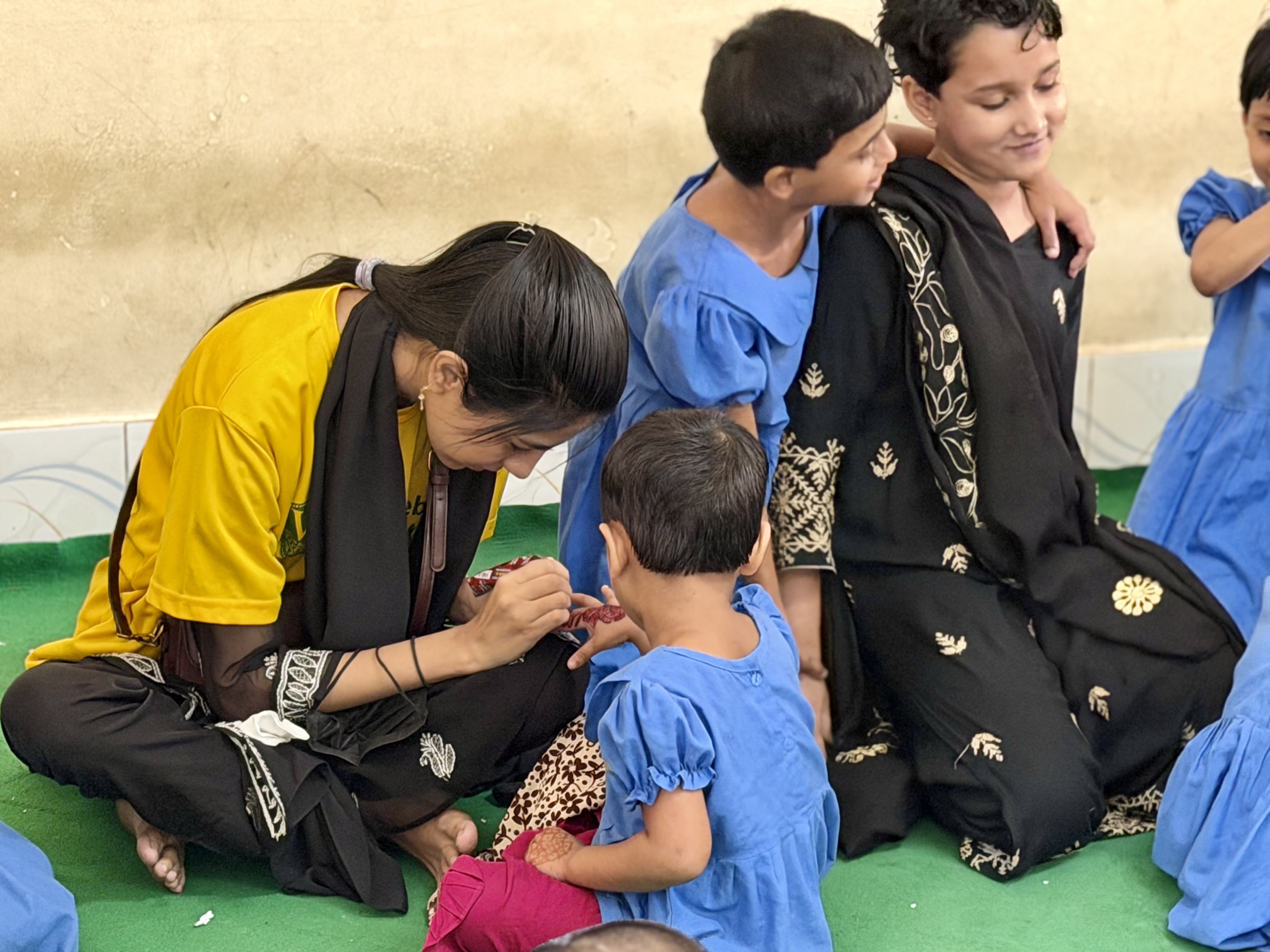 The event was filled with warmth and আনন্দ as volunteers spent quality time with the children through shared meals and creative activities like henna art. To make the occasion even more memorable, thoughtful gifts were distributed among the children, including new clothes, snacks, sunglasses for the boys, and hair clips for the girls.